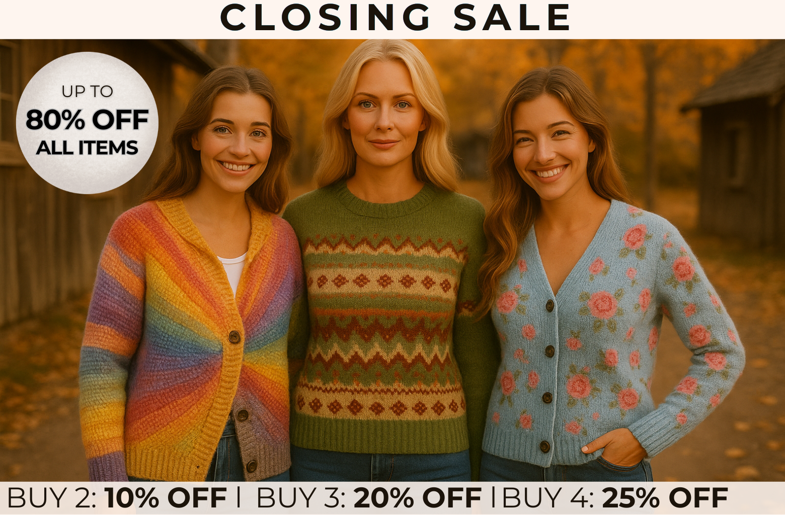 After years of bringing warmth, comfort, and everyday style, our journey is coming to an end. This is your final chance to take home a sweater from our collection. Once they’re gone, they’re gone forever.